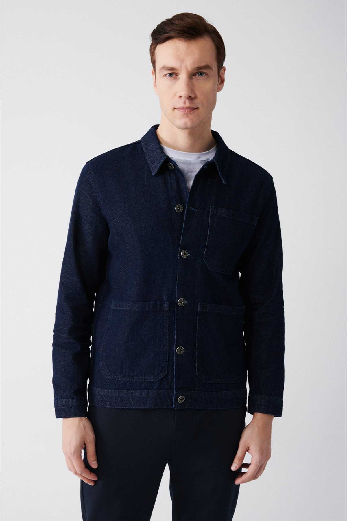 یقه کلاسیک، جیب های جانبی و سینه، بستن دکمه جلو، شستشوی ساده، کت جین متناسب با استاندارد
